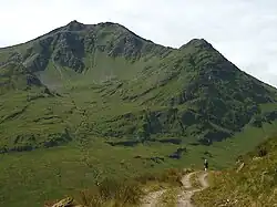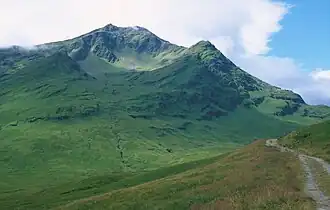 Ben Lui (Scottish Gaelic: Beinn Laoigh)[2] is a mountain in the southern Highlands of Scotland. It is a Munro with a height of 1,130 metres (3,710 ft). Ben Lui is in northeast Argyll and is the highest peak of a mountain chain that includes three other Munros. It has five well-defined ridges radiating out from the summit. Four corries lie between the ridges, including Coirre Gaothaich on the northeast side of the mountain.