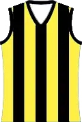 The Benalla Half Holiday FC was formed as a junior club in May, 1899, wearing a blue jumper with a yellow sash.[45] The club's jumper colors were changed to red, white and blue at a meeting in April, 1900.[46] The club played in the Benalla Wednesday (Half Holiday) FA and wore maroon jumpers with white knicks in 1908.