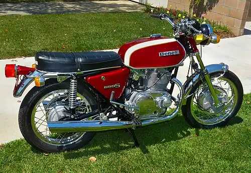 The Benelli 650 Tornado is a 650 cc (40 cu in) parallel twin motorcycle produced by the Italian manufacturer Benelli from 1970 to 1975. The model was intended to compete with the British big twins in the lucrative American Market but by the time the model was introduced the market had changed following the launch of multi-cylinder bikes by the Japanese manufacturers, most notably the Honda CB750.[3][6] The Tornado was also badge engineered as a Motobi, Benelli's sister company.[7] Around 3,000 Tornados were produced with half being sold in Italy.[8]