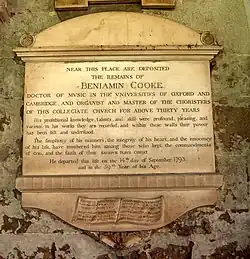 - ^ Benjamin and Robert Cooke Westminster Abbey. Retrieved 21 May 2017.