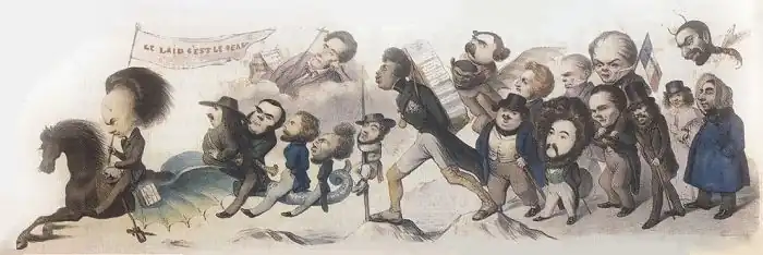 It is as a cartoonist and caricaturist that he showed the fullness of his talent. Alongside artists like Daumier or Grandville, he collaborated from 1830 to 1835 with La Caricature and Le Charivari, illustrated satirical newspapers directed by Charles Philipon (of whom he drew a portrait charge, as well as with other newspapers such as La Mode. From 1839 to 1841, he realized for the Galerie de la presse, de la littérature et des arts and the Panthéon charivarique, portraits of personalities among the most influential of the time which now make prominent historical documents (100 boards).