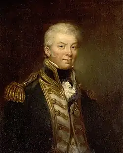 - ^ Full dates of flag rank: Rear-admiral of the blue 12 August 1819, rear-admiral of the white 27 May 1825, vice-admiral of the blue 22 July 1830, vice-admiral of the white 10 January 1837, admiral of the blue 23 November 1841.[31]