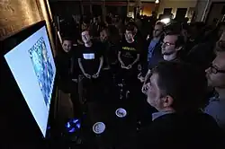 Foddy also expressed an interest in games history, particularly the English and European games not widely known in the United States.[4] In 2014, his Indiecade presentation linked older, independently developed video games into the historical lineage of indie game development as it was contemporaneously known.[9] In 2016, Foddy co-developed Multibowl, a competitive minigame compilation of scenes from 1980s and 1990s video games. Like the microgames of WarioWare, Foddy presents two-player, 30-second challenge scenarios culled from 230 commercial games, with a point awarded to the player who first completes the scenario's objective. Foddy was spurred by his interest in video game history and the accessibility of video game emulators. He privileged original titles in his selections. The game was exhibited at XOXO and Fantastic Arcade, and will not receive a public release to avoid legal issues.[10]