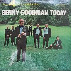 Benny Goodman Today is a jazz compilation album by Benny Goodman. It was released in 1970 and features big band and small group selections recorded during a concert in Stockholm, Sweden. It was released in the United States on the London Records label (London SPB 21, 2-LP set)[1] as a "phase 4 stereo spectacular".