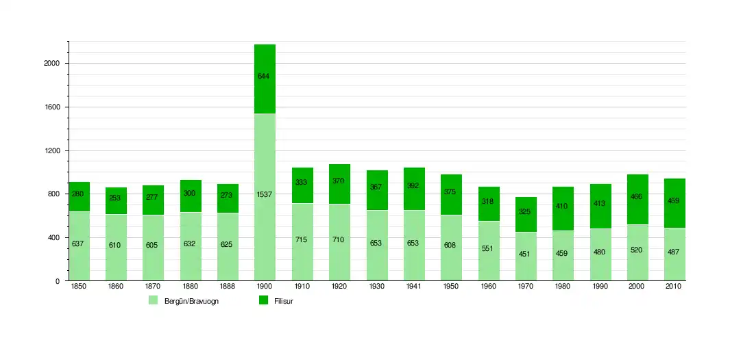 The historical population is given in the following chart. During construction of the Rhaetian Railway line the population of both communities increased significantly. [7]
