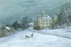 The surrounding park was fashioned and cultivated by his predecessors according to contemporary ideas of garden design, from a formal Baroque garden to an English landscape garden. Ludwig had the "Moorish Kiosk" set up here which Franz von Seitz had designed and built for the Winter Garden on the roof of the Munich Residenz.[3] In 1876 the King had a small chapel built.