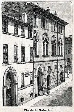 The origin of the palace, which once belonged to the Buffali family, is not known with certainty, but some documents kept in the archives of the Congregation of Charity of Modena, record the presence in the mid of 15th century of a rich family of notaries called Sàssoli de 'Bergami, that is, originating in the city of Bergamo, of which later they took and kept their surname (Bergami or Bergomi).[2] The noble family was raised to the title of Counts by the House of Pico, and the most prominent members of the family were the medician-philosopher Cristoforo Bergomi, pupil of Antonio Cittadini from Faenza, and the literary canon Giuseppe Bergomi.[3]