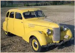 Peugeot’s 402 was a rival to the Dauphine, but also suggested a solution of sorts. At the 32nd Paris Motor Show in October 1938 Berliet presented a completely rebodied Dauphine, displaying the curved panels that were becoming mainstream for the volume auto-makers, reflecting the switch to pressed steel car bodies.[6] Only four of the rebodied cars were on the Berliet show stand, and they were not at this stage included in the manufacturer's price lists.[6] Prices were announced on 28 November 1938, although production commenced, at a rather gentle rate, only during the first part of 1939.[6] Berliet's passenger car output volumes did not begin to justify the capital cost for steel presses and dies used to stamp out panels for all-steel car bodies, and for 1939 the manufacturer gave up producing car bodies.[6]