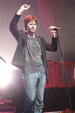 ![]() Bernard Fanning performing with Powderfinger on the Across the Great Divide tour in 2007 | |