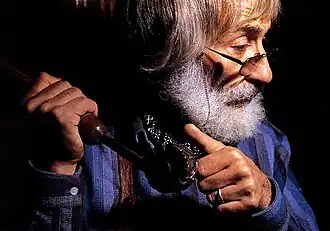 Having a strong attraction for the arts, especially painting and sculpture, he became a pupil of Alberto Giacometti and Emmanuel Mane-Katz, during the golden era of Montparnasse. A family friend, who was an upholsterer, entrusted to him in 1960 the work of restoration of leather antiques, allowing him to make a living during this period in Montparnasse. He rediscovered leather and fell in love with its history. At that time he was to begin a research on leather and leather goods, in museums and libraries, which would never cease throughout his life.
