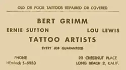 - ^ a b c Leeds, Jeff (1995-10-20). "Ebb Tide at a Tattoo Landmark: A maritime tradition that flourished at Grimm's is fading along with Long Beach's naval operations. Though old salts sigh, today's image-conscious military frowns on skin paintings". Los Angeles Times. Retrieved 2016-07-29.