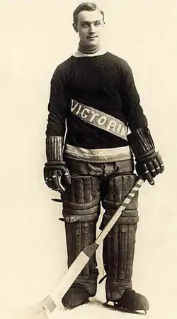 | 1913–14 | Victoria Aristocrats | PCHA | 16 | 10 | 6 | 0 | 1005 | 80 | 0 | 4.78 | 3 | 0 | 3 | 0 | 195 | 13 | 0 | 4.00 | ||