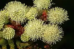Berzelia abrotanoides, commonly known as redlegs, is a species of flowering plant in the family Bruniaceae native to the Western Cape region of South Africa.[1] The foliage and dried flower heads are used in the cut flower industry.[2]
