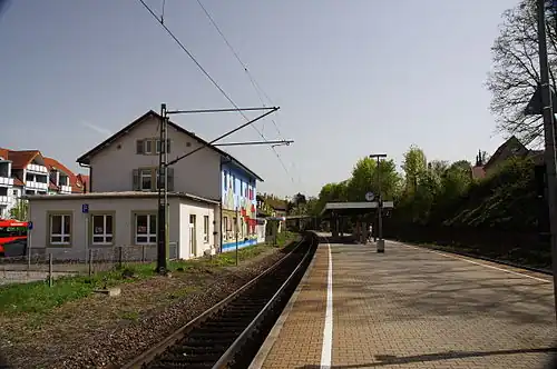 Deutsche Bundesbahn completed the electrification of the line between Bietigheim and Heilbronn on 1 June 1959. The station building received an additional single-storey annex on its southern side.
