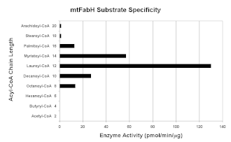 The catalytic activity and substrate specificity of mtFabH has been measured[13] then further probed using crystallographic and directed mutagenesis methods.[14] Structures have been determined of ecFabH bound with substrates, (CoA, malonyl CoA, degraded CoA).[8] Specific inhibitors developed using rational design have recently been reported.[15][16][17] In 2005, the structure of a catalytically disabled mtFabH mutant with lauroyl-CoA was reported.[18]