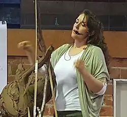 Cavener addresses controversial subject matter head on and in direct opposition to the reputation of her chosen medium, clay.[1] The artist focuses her sculpture on human psychology, stripped of context and rationalization, and articulated through animal forms. As she states, "on the surface, these figures are simply feral animals suspended in a moment of tension. Beneath the surface, they embody the consequences of human fear, apathy, aggression, and misunderstanding".[2] Her process is very physical, involving thousands of pounds clay sculpted using her whole body. Her work has earned many awards, and is exhibited in private galleries and public museums throughout the United States.