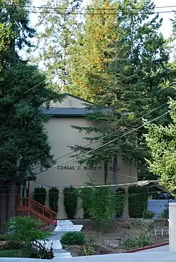 Cordas C. Burnett Hall was a three-story men's dormitory on the northeast side of the Bethany University campus, named in honor of the previous college president. The southwest side of each floor housed a common area for students to gather and watch television. The hall had a communal "gang" shower area. The dormitory contained rooms which housed four students which shared a communal desk located in the center of the room.