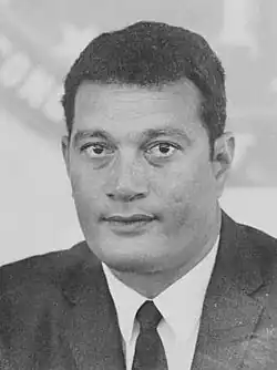 After his experiences at the University of Hawaiʻi, which included confronting racism, Henry became active in politics and an advocate for Micronesian independence.[9] The same month Henry graduated from college, the 25-year-old was selected as a Micronesian delegate and advisor for the United Nations Trusteeship Council on June 29, 1959.[7] He was only the third Micronesian to hold such a position.[10] Also that year, the Pohnpei Congress was reformed into the Pohnpei District Legislature and Henry was elected to the legislature.[4] After being elected, he was chosen as the presiding officer of the congress, thus becoming its first speaker.[4] He later became the deputy speaker of the district legislature and also served in the position of Chairman of the Political Committee.[8][10] He remained in the Pohnpei District Legislature until 1969.[8] Additionally, in the fall of 1959 Henry served as one of two Pohnpei representatives at the annual Interdistrict Consultative Conference to the High Commissioner, where he discussed with representatives from six other districts recommendations for "the economic, social and political advancement of the islands and their inhabitants."[7]