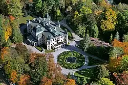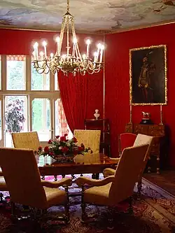 - Manor house: It was appeared like forward fortification of Krásna Hôrka castle. Core of manor house was built in the 15th century. István Andrássy began a change of this building on luxury formal residence. Manor house was rebuilt on three- storey hunter manor house and today is his appearance relatively similar. Exposition of manor house create: collection of works of art, historical furniture, unique library, weapons, precious ceramics, glass and porcelain. There are also hunting trophies from huntings from home and in foreign countries and various objects like eskimo clothes and armament of samurai brought from far journeys. It is also home to the mummified remains of an Egyptian man possibly named Nebey who lived during the Eighteenth Dynasty of Egypt.[4] In 1985 manor house in Betliar was promulgated on national cultural monument. Around the manor house is a unique natural park, which was in a 1978 write-in list of important historical gardens of the world. In this park are infrequent woody plants from foreign countries and also native oaks and spruces.