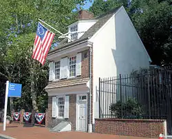 Weisgerber later helped start the foundation that restored 239 Arch Street in Philadelphia as the Betsy Ross House,[18] though Ross may have actually lived in the demolished house next door.[19] Weisgerber promoted the story of Betsy Ross by sending prints of the painting to foundation donors. It was reported in 1928 that he received donations from 4 million children and adults.[20] In 1897, the New York City School Board approved the order of framed prints for all schools in their system.[21]