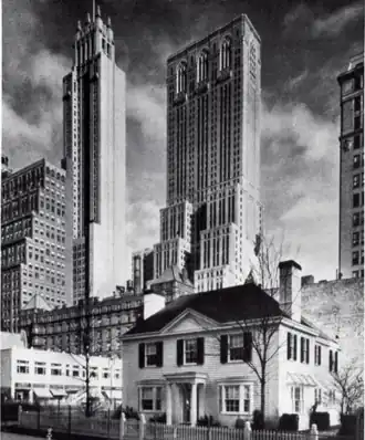 In 1934, a Better Homes in America project, America's Little House was designed and built by Roger Bullard in New York City on Park Avenue and 39th Street.[10] It was a two story home with a white-picket fence situated amongst the towering skyscrapers of the metropolitan city. Bullard won the Gold Medal in the 1933 Better Homes in America small homes design competition. It was meant to promote single-family homeownership, modernization, and improvements.