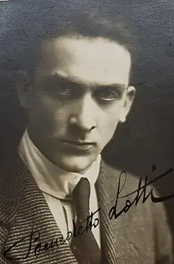 The young Betto Lotti dedicated himself to mastering his style, especially in charcoal drawing, oil painting and engravings at the Academy of Florence; therein he met Ottone Rosai who became his great friend, and with whom he shared the enthusiasm and experience of the period between 1911 and 1914. In 1913 the two young artists held together their first exhibition at the Cavour Gallery in Florence, displaying 14 paintings each. The fathers of Futurism, Filippo Tommaso Marinetti, Carlo Carrà e Umberto Boccioni attended the exhibition and were impressed by the works of young artists. After this episode the Florentine chronicles started to show profound interest in the two young people. The success both with critics and audience was remarkable. In the works displayed, Lotti opted for stylised female figures that seemed almost visions or ghosts, intrepid somber backgrounds, disturbing reflections of profiles and faces. The expressionist style of the young artists was defined by some critics of Florentine art as "sensibilism".
