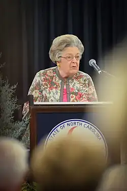 In 1982 she was a chief lobbyist for the ratification of the Equal Rights Amendment.[3] In 1984 she managed Hunt's unsuccessful Senate campaign against Jesse Helms.[3] During Hunt's third term as governor, he named McCain as the Secretary of Cultural Resources in 1993.[3][8] As secretary, she opened the North Carolina Museum of History, celebrated the dedication of the USS North Carolina (BB-55), excavating the Queen Anne's Revenge, and opened the Betty McCain Gallery in Raleigh.[3][10] When opening the museum of history, McCain organized a women's exhibit that included pictures of suffragettes who were relatives of McCain.[3] As secretary, she was a leader of the North Carolina Museum of History Associates,[11] the North Carolina Arts Society, and the North Carolina Symphony Society.[12] McCain secured major funding for the building of Meymandi Concert Hall at the Duke Energy Center for the Performing Arts and securing additional land for the North Carolina Museum of Art.[13] She served as secretary until 2001.[3][14]