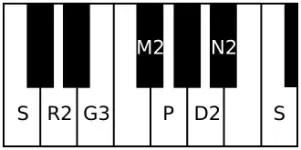| Arohanam | S R₂ G₃ M₂ P D₂ N₂ Ṡ |