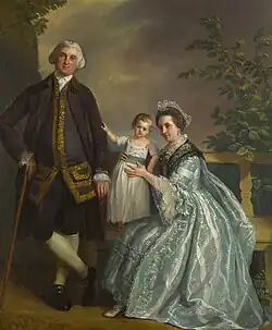 He was employed to do some painting at Audley End House by Sir John Griffin. In late 1772 Ann White, a servant at the house, gave birth to his illegitimate son, John Biagio Rebecca. Rebecca acknowledged that he was the father, and agreed to deposit £100 with Griffin for the support of the child, thus absolving himself of any further responsibility to it or its mother. A note in the baptismal register at Saffron Walden describes Rebecca as "a most ingenious artist who was employed by Sir John Griffin, at Audley End, to paint the ceiling & Panels of ye little south drawing Room, & several family portraits in the great Room over the eating Parlor!!!"[2][3] John Biagio Rebecca became a respected architect.