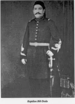 Bib Doda Pasha aided the Ottoman raids against the Albanian rebels of Dervish Cara, during the Albanian Revolt of 1843–44 in the sanjaks of Prizren, Scutari and Ohrid. He played a significant role in the expedition, and was decorated and awarded an honorary sabre and pistols.[6] Doda received the title "Pasha" in 1849 and allowed to maintain an army up to 10,000 people.[7]