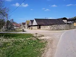 Records show that agricultural work took place at Bicton at least in the 14th century. Its fields were among the most fertile in the Clun Valley. They were occupied by Welsh bondsmen, unfree tenants farming open fields.[12] It was the location of a demesne sheep stint for 300 animals owned by the Fitzalans in the early 14th century.[10] In 1354 a worker was paid four bushels of rye for spreading dung for seven weeks; and there is a later account of the same activity in 1372.[13] In 1355 sixty Welshmen provided mowing services to the manor at Bicton.[14] In 1373 240 sheared sheep were sent from nearby Clunton and Kempton to the reeve of Bicton. Swapping flocks of sheep between the locations of Bicton, Newton, Kempton, and Clunton was a recurring event throughout the second half of the 14th century.[13] Bicton Farm has been farmed by the same family for centuries.[15][16] The farm has one of the four water mills on the River Unk.[17] Records from 1919 show activities of agroforestry.[18]