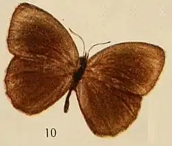 2. ^ "Afrotropical Butterflies: File E – Nymphalidae - Subtribe Mycalesina". Archived from the original on 2014-02-22. Retrieved 2012-05-14.