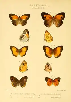 - ^ "Afrotropical Butterflies: File E – Nymphalidae - Subtribe Mycalesina". Archived from the original on 2014-02-22. Retrieved 2012-05-16.