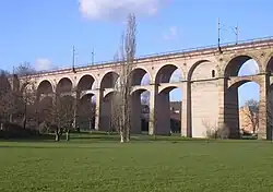 The Bietigheim Viaduct is a railway bridge which carries the Württemberg Western Railway over the Enz valley at Bietigheim-Bissingen,[1] and one of the landmarks of the town.[2] The double-track railway viaduct is 286 m (938 ft) long and 32.1 m (105 ft) high and is constructed of stone with two layers of 21 arches.[1]