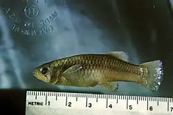 - ^ Christopher Scharpf; Kenneth J. Lazara (26 October 2019). "Order CYPRINODONTIFORMES: Families POECILIIDAE, ANABLEPIDAE, VALENCIIDAE, APHANIIDAE and PROCATOPODIDAE". The ETYFish Project Fish Name Etymology Database. Christopher Scharpf and Kenneth J. Lazara. Retrieved 2 November 2019.