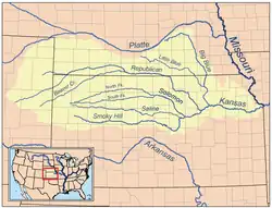 ![]() Map of the Kansas River drainage basin showing the Big Blue and Little Blue rivers | |