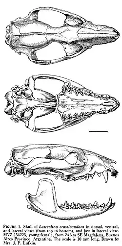 - ^ a b c d e Marshall, Larry G. (6 January 1978). "Lutreolina crassicaudata". The American Society of Mammalogists: Mammalian Species (91): 1–4. doi:10.2307/3503877. JSTOR 3503877.