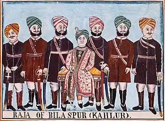 According to local oral tradition and records during the reign of Raja Harihar Chand, a new state was founded around 697 CE by his son First Ruler Raja Bir Chand (697–730). He was born in the Chandel Rajput dynasty, who claimed to be a descendant of Sisupala from the Chandravansha Haihaya tribe.[3] After Raja Kahal Chand (890–930) had built Kahlur Fort the state was named Kahlur (probably from Kahal-pur) and the ruling Chandel dynasty of Kahlur was also known as Kahluria. Initially the capital of the state was at a place named Jandbari (now in Punjab, India) and then it was transferred to Kahlur Fort, but was later moved permanently to present town Bilaspur by Dip Chand, the 32nd Raja of Kahlur (reigned 1663–1665).[1]