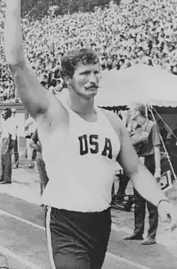 Born in Wilmington and raised in New Castle, Delaware, Skinner was trained as a metalsmith and welder, as were his father and grandfather. In January 1957, aged 17, he quit high school and enlisted to the U.S. Navy; he completed his service in spring 1961.[3] After that he played semi-professional football with the Wilmington Clippers and trained in boxing and weightlifting before changing to javelin throw. By March 1968 he quit his welding job to attend the University of Tennessee and graduated in industrial education. In 1971, his refusal to shave his mustache led to his removal from the University of Tennessee track team, an infamous incident covered by Sports Illustrated. He continued his javelin career throwing for the New York Athletic Club. In 1971 he captained the U.S. team at the Pan American Games. Later that year he received an elbow injury and was stabbed while trying to stop a bar fight in Knoxville; as a result he missed the 1972 Summer Olympics.[2]