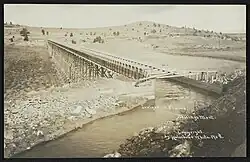 The Land & Irrigation Company's successor, the Billings Bench Water Association, was incorporated on September 24, 1915 by 38 landowners along the canal route.[2] The BBWA has operated continuously since that time. The following year, high winds blew down the wooden flume over Alkali Creek. It was replaced by a wooden siphon tube.[3]