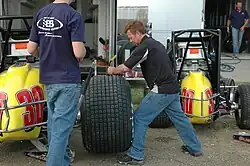 ![]() Boat (right) preparing tires for his son Chad's sprint car in 2007 | |||||||