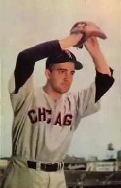 Pierce was sent back to Buffalo for the 1946 season, now with Gabby Hartnett as his manager (Harris having moved to the team's front office), but missed most of the year with a back injury which was attributed to overwork.[16] After the 1947 season in Buffalo, where Richards was now his manager, he returned to Detroit in 1948, spending most of the season in the bullpen but making five starts and posting a 3–0 record; he had yet added very little weight since his high school days, being still at 148 pounds.[17] He made his first start, and earned his first major league victory, on August 8 against the Washington Senators, pitching 7+2⁄3 innings and striking out six in a 6–5 victory in which he also drove in a run with a triple and scored.[18] However, Pierce also issued 51 walks in 55+1⁄3 innings that year, and concerns about his pitching control led the Tigers to trade him to the White Sox on November 10 for catcher Aaron Robinson and $10,000, in what most baseball historians consider to be one of the most one-sided trades in baseball history.[19][20][21] Talks had initially centered on Chicago acquiring Pierce's high school teammate Ted Gray, although sources differ as to whether it was White Sox general manager Frank Lane or his Detroit counterpart Billy Evans who switched the focus to Pierce;[9][22] the Tigers tried to call off the deal one day after it was completed upon fully realizing what they had given up, even offering $50,000 to get Pierce back, but Lane had no intention of giving up the steal he had accomplished in his first trade as general manager.[9][23][24]