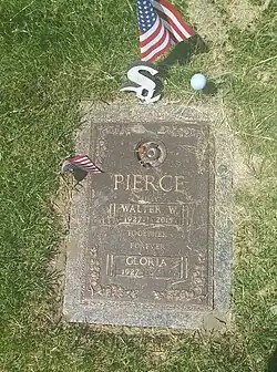 Pierce died in Palos Heights, Illinois, on July 31, 2015, at the age of 88 from gallbladder cancer.[97] Pierce was a 33rd Degree Scottish Rite Mason of Evergreen Park Lodge; his funeral was held at Evergreen Park Presbyterian Church, and he was entombed in Chapel Hill Gardens South Cemetery in Oak Lawn, Illinois.[98]