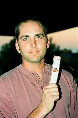 In 1989, Ripken's Fleer card showed him holding a bat with the expletive "FUCK FACE" written in plain view on the knob of the bat.[29][30] Fleer subsequently rushed to correct the error, and in their haste, released versions in which the text was scrawled over with a marker, whited out with correction fluid,[31] and also airbrushed.[32] On the final, corrected version, Fleer obscured the offensive words with a black box[33] (this was the version included in all factory sets). Both the original card and many of the corrected versions have become collector's items as a result. There are at least ten different variations of this card.[34] Once news got out, the original card's price went up to several hundred dollars.[35]