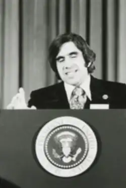 ![]() Billy Zeoli speaking from the podium at the National Religious Broadcasters Annual Congressional Breakfast, January 28, 1975. Courtesy of the Gerald R. Ford Presidential Library. | |