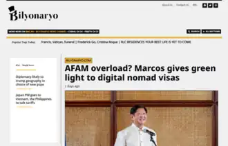 Bilyonaryo (transl. billionaire) is a digital news website owned by Prage Management Corporation. The website primarily produces news articles related to business and finance.