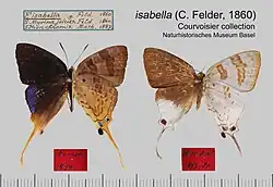 One or more of the preceding sentences incorporates text from this source, which is in the public domain: Swinhoe, Charles (1911–1912). Lepidoptera Indica. Vol. IX. London: Lovell Reeve and Co. pp. 24–26.