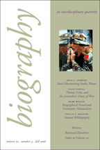 Biography: An Interdisciplinary Quarterly is an international, academic journal that provides a forum for biographical scholarship. Its articles explore the theoretical, generic, historical, and cultural dimensions of life-writing; and the integration of literature, history, the arts, and the social sciences as they relate to biography. It also offers reviews, concise excerpts of reviews published elsewhere, an annual bibliography of works about biography, and listings of upcoming events, calls for papers, and news from the field.