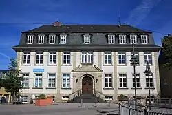 - Am Kirchplatz 5 – Evangelical and Catholic public school; nine-axis Baroque Revival building with mansard roof, 1911; characterizes square’s appearance