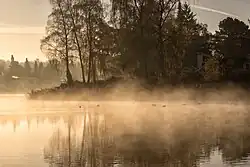 Birkerød is bordered by 941-hectare Lake Furesø to the south and Lake Sjælsø to the north. The smaller Birkerød Lake is located just south of the railway station in the town centre. The approximately 86 hectares wetland Vaserne (in Danish) along the northeastern shores of Lake Furesø and the western part of Frederikslund Forest separate Birkerød (Bistrup) from Holte to the southeast. Bistrup Hegn is situated between Bistrup to the south and Birkerød to the north. Rude Forest is located to the east of Birkerød. Eskemose Forest at Lake Sjælsø, north of Kajerød, is the site of several natural springs.
